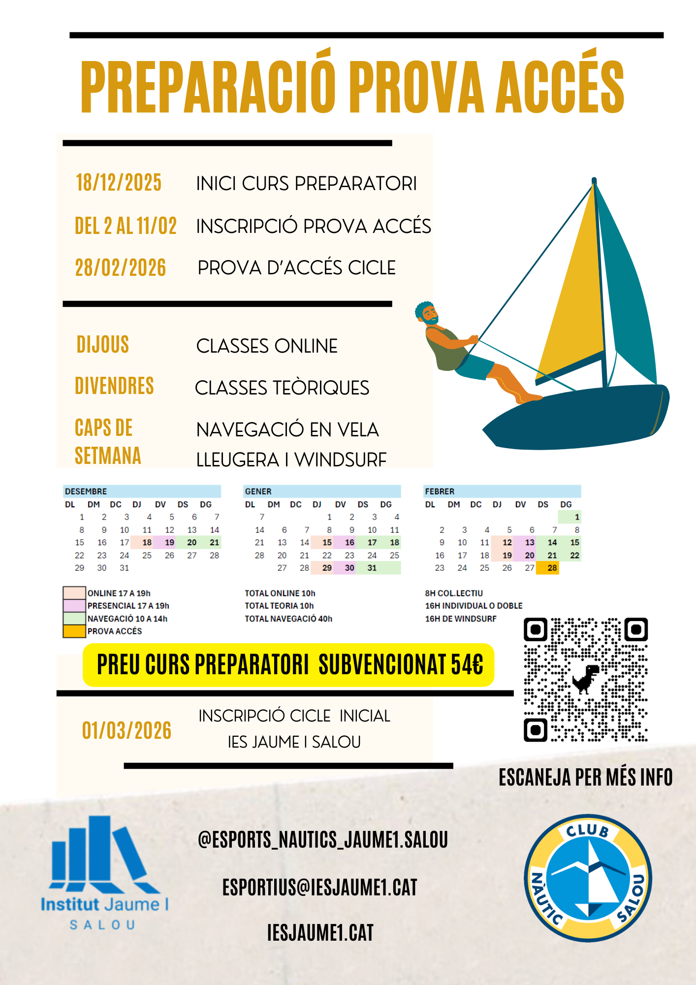 CURS DE PREPARACIÓ PER LA PROVA DE VELA NO SUBVENCIONAT